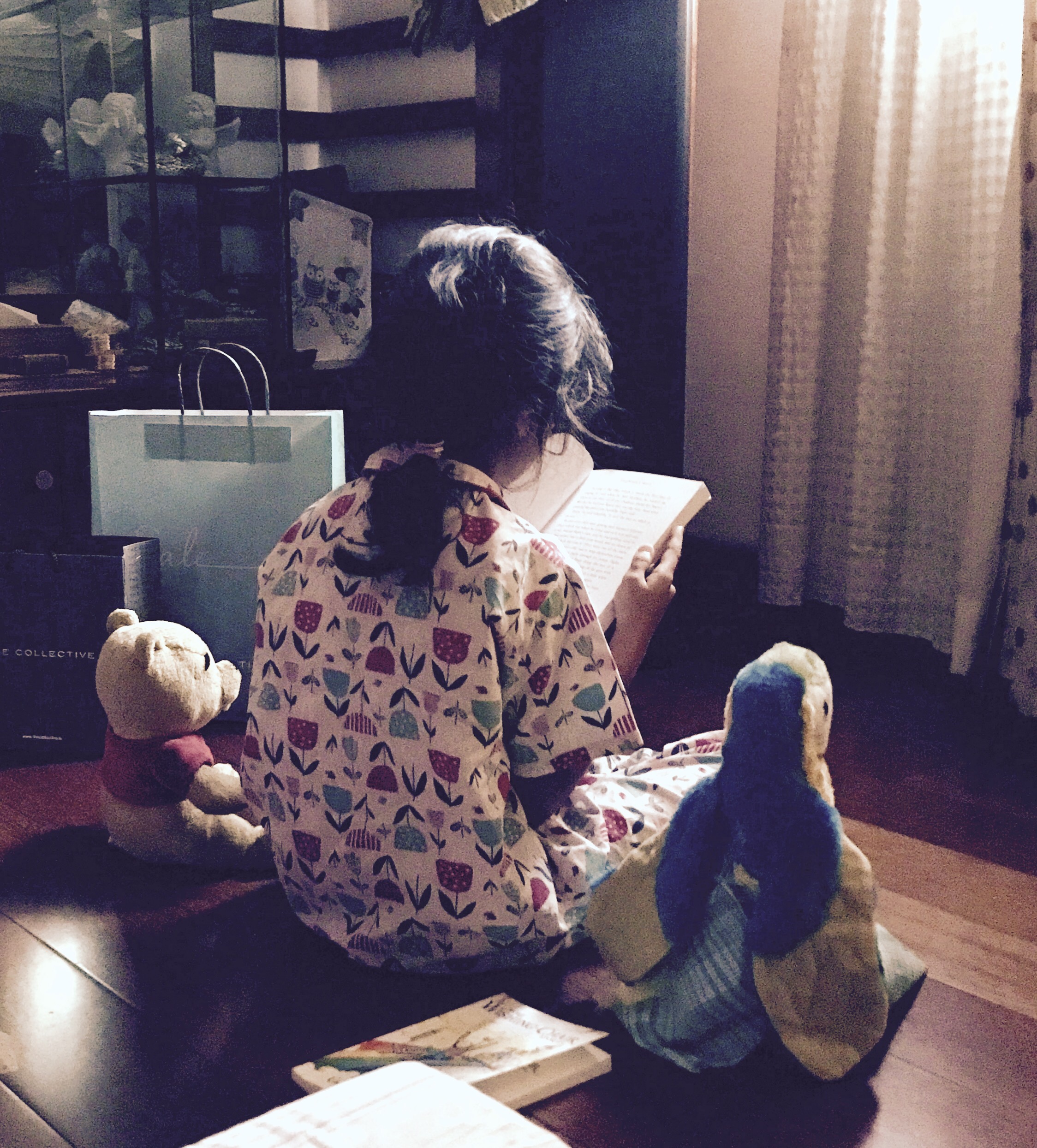 Now the biggest deal with her was “when do I read” coz during the day she only wants to play. She still has a lot of imaginary play and totally loves doing her jumping around. She watches some TV too. Maybe an hour on holidays ( school days is restricted to half an hour screen time). So she said fine. I will read in the hour as soon as I wake up and till you wake up. Coz even on holidays she is up by 6:30 and me being a lazier bum wake only much later (I won’t say when π) so I woke up to the below scene in my bedroom. She had some mates over too for reading π