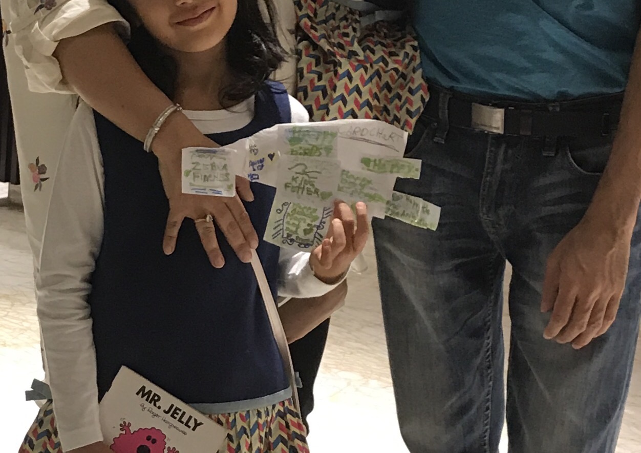 I have mentioned before that P loves to do her own play. She needs her space and time to herself. That’s when she’s happy. She made a very sweet card for us on our anniversary…… sitting in the jw Marriott coffee shop. She had carried paper, colours, glue and god knows what not. And while we had dinner…. she made us this card. It wasn’t exactly a card. I think collage will be the right word. It had little booklets and little tags. Unfortunately we misplaced it in bringing the sleeping kids home π I have a pic of it though.
