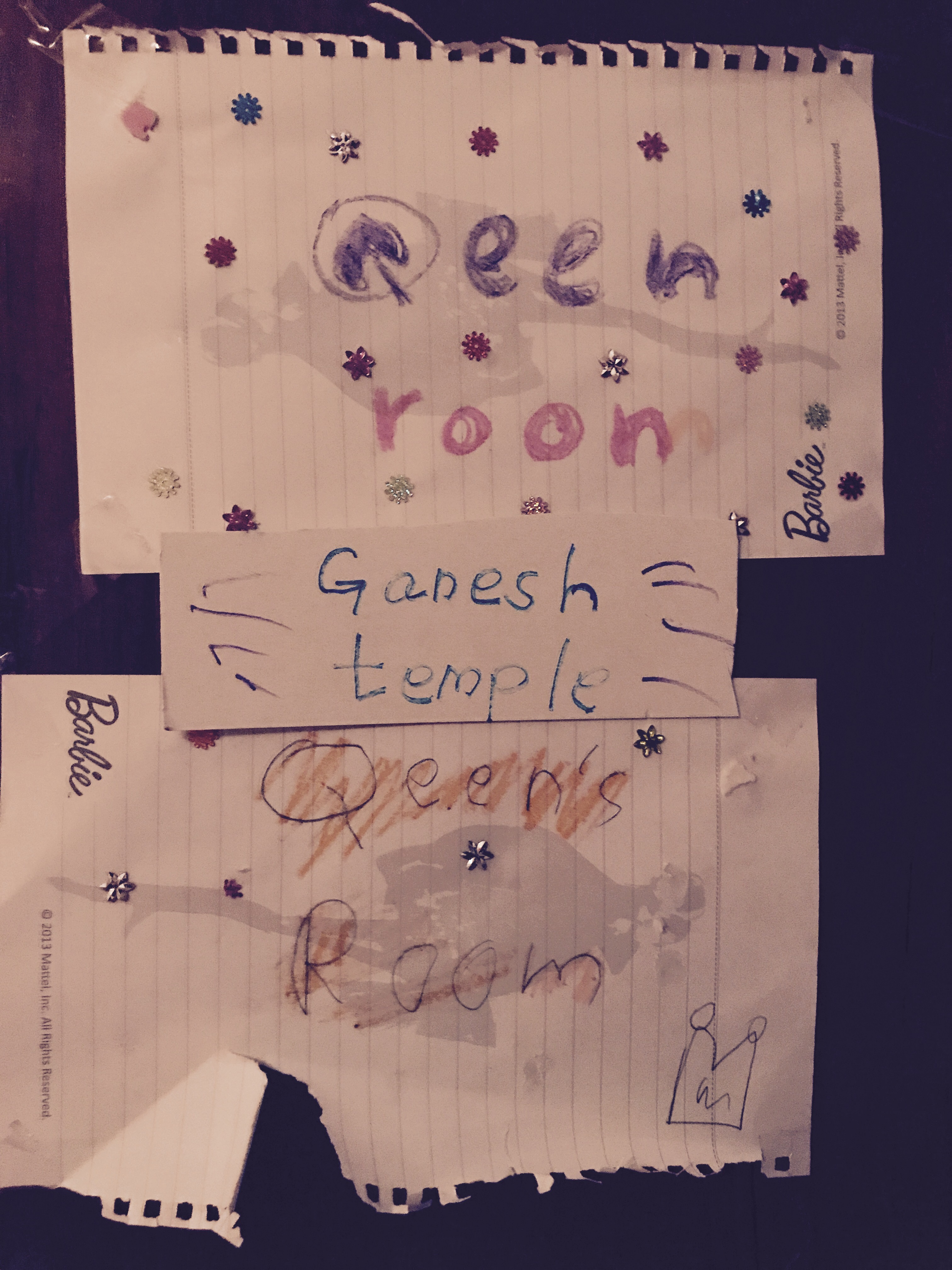 In pics below you can see she put a small sign on her room door saying Ganesh Temple ( note that it’s a temporary sign board. The permanent one reads ‘queens’s room’ π)