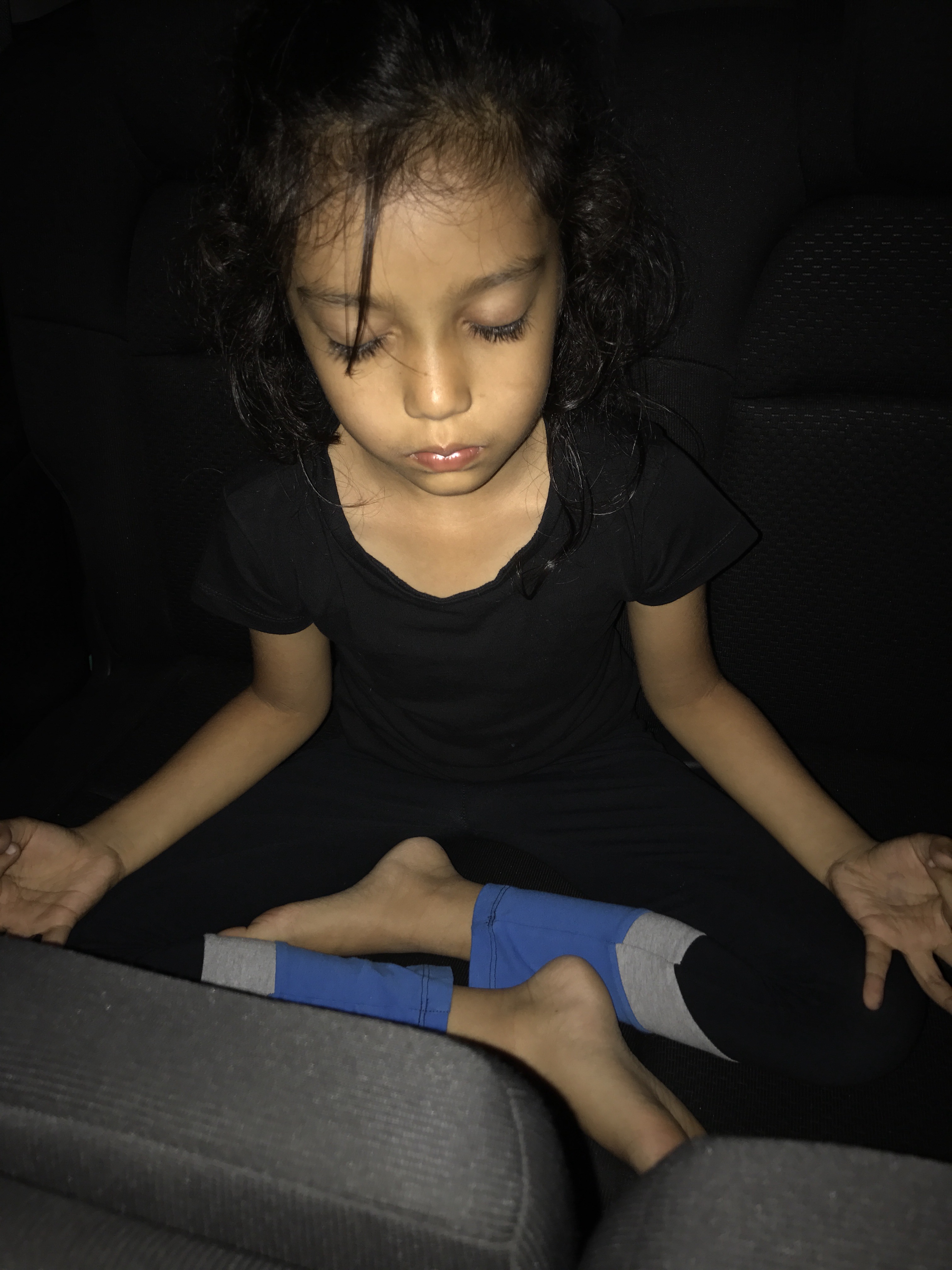 Today P suddenly came up to me and asked me “mamma what’s our soul?” After I explained the best I could, she told me her yoga mam has said you must feed your soul. And the best way to do that is meditation. We were in the car back from her gym class when she said this. Her current favourite song was playing on the radio. And she said I want to meditate right now. Shut the music. She said mam has said we must sit quietly and listen to the sounds of nature (I was thinking… all you’re going to hear in this traffic is horns blaring and cars moving) so she sat in the back seat and started meditating right there.