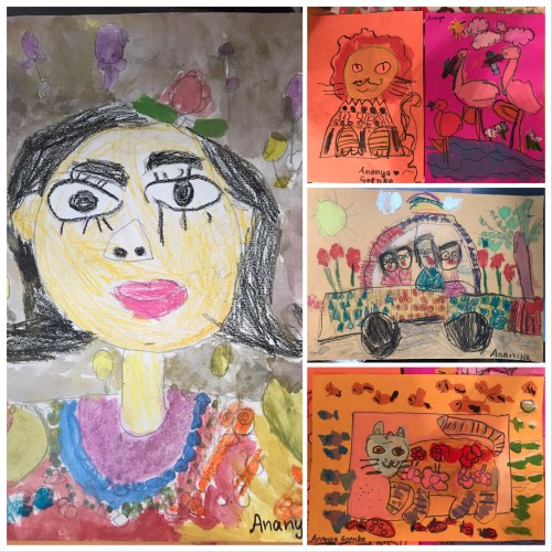 These are A’s artworks. We displayed the Self portrait and the Car with our family 🙂