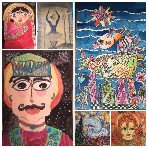 A few days ago the kids’ art teacher held an exhibition cum sale of her students’ works. She has some 30 odd students and there were around 60+ artworks on display. Her aim was to encourage her students and showcase their work. And what an event it was! So much talent collected in one place. AMAZING! Each artwork was wonderful and you could see the passion the kids had put in their work.