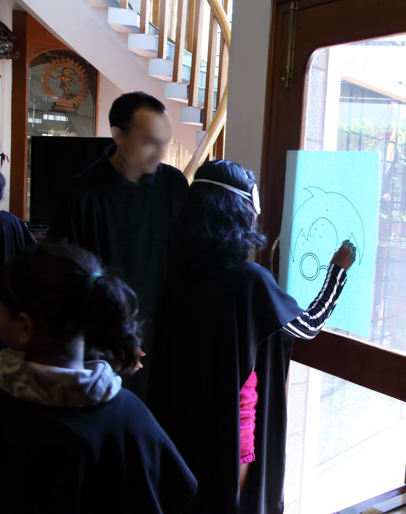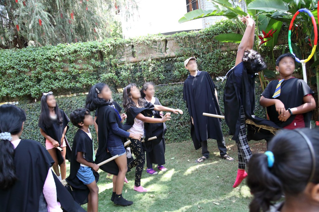 P had planned the party along with her best friend. What games to play and what will be the format of the party. Everything they decided. This is what they came up with. Our house is to be transformed into Hogwarts. D (their father) and me are to be professors. We will have 2 periods in the time table for the day with a break in between. The students will first be sorted into the 4 houses. Then 2 teams of 2 houses will be formed. Team 1 goes to period 1 with D and Team 2 goes to period 1 with me. We play 2 games each. Then we play a game of quidditch. Team 1 vs Team 2. Then the teams exchange the teachers for Period 2. The games played will earn points for their houses. In the end we were supposed to play 2 more games with everyone together of 1 minute each. Which had bonus points for the winners. We were supposed to have a winning team and they were supposed to win cups… you know the little toy ones. I say ‘supposed to’ because we never reached the bonus games and we realised about the cups only a day before the party and then it was too late for me to hunt for the cups.