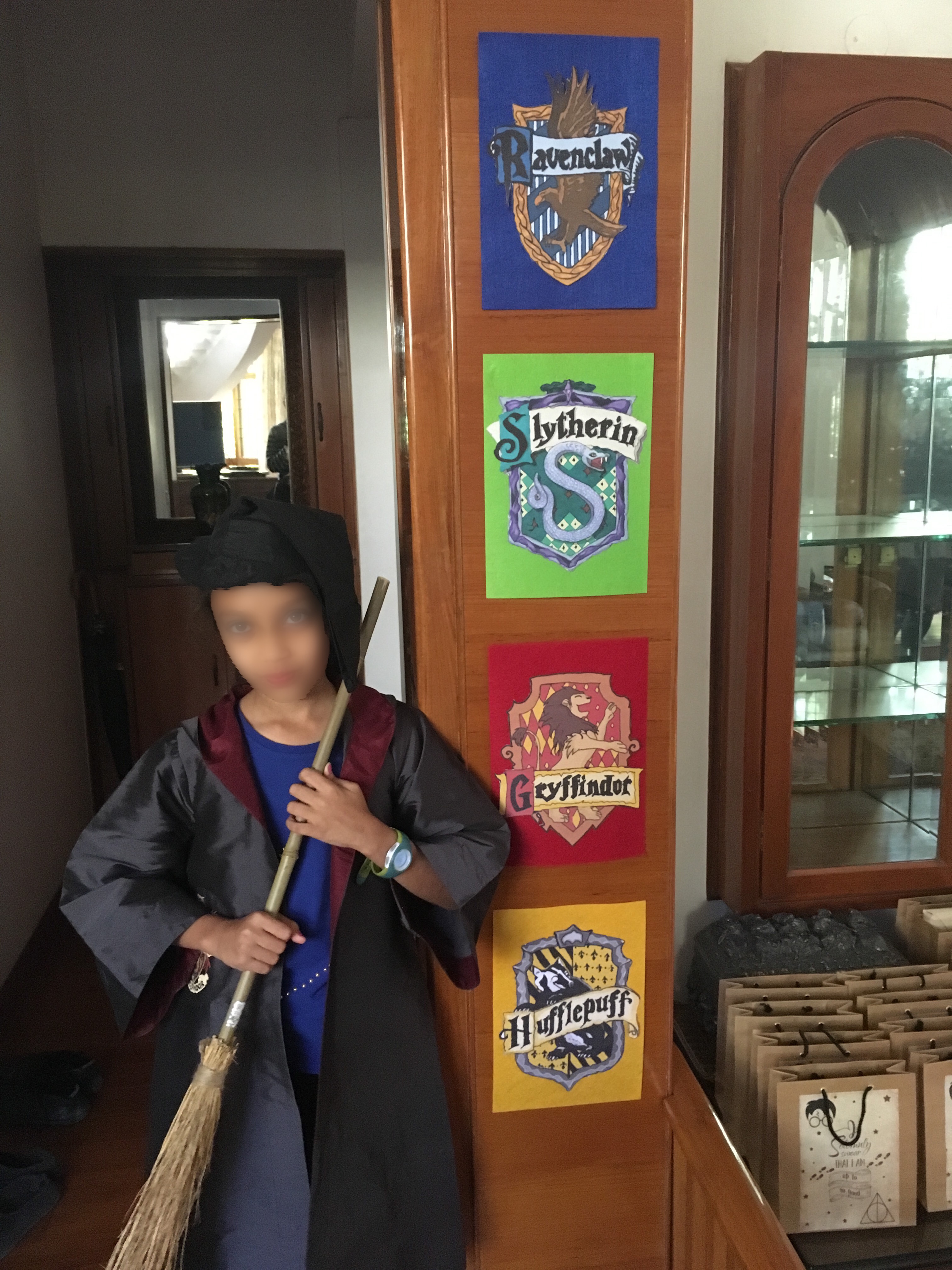 Does that sound like a Harry Potter book title? 😉 for this one we had to go through a lot of prep. Neither their father nor me have ever read Harry Potter and it turns out that my 10 year old is turning into a potter head. So to introduce us to the characters she made us watch the first Harry Potter movie. It was nice. Not as bad as I thought it was. I had watched it when it released and I don’t remember a thing. So we were both introduced to the characters and the things in the movie. Sorting hat, flying keys, Dumbledore and quidditch and whatever else it is.